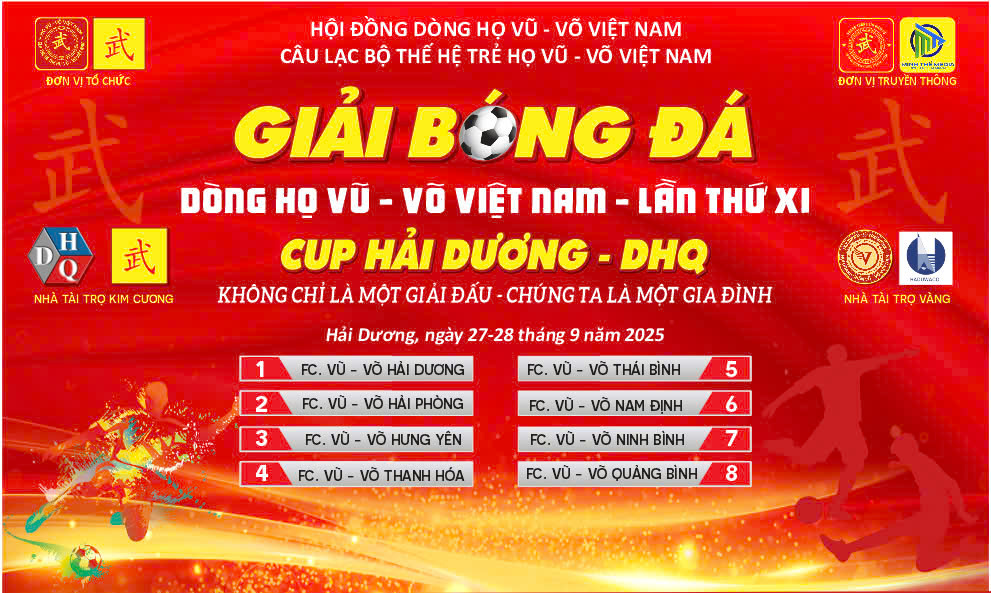 Hội đồng Dòng họ Vũ - Võ Hải Dương và CLB Thế hệ trẻ họ Vũ - Võ Hải Dương đăng cai tổ chức Giải Bóng đá Dòng họ Vũ - Võ Việt Nam lần thứ XI - năm 2025 Cup Hải Dương - DHQ.