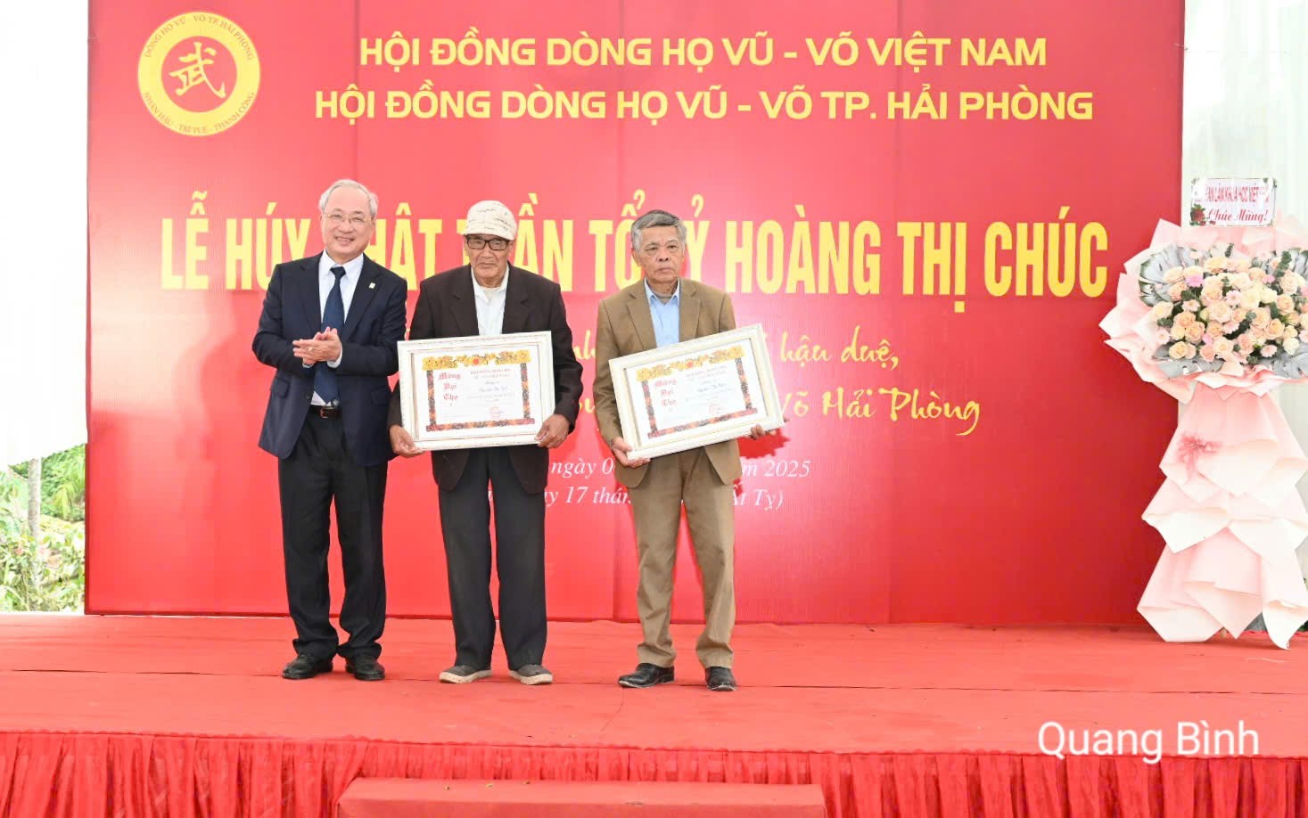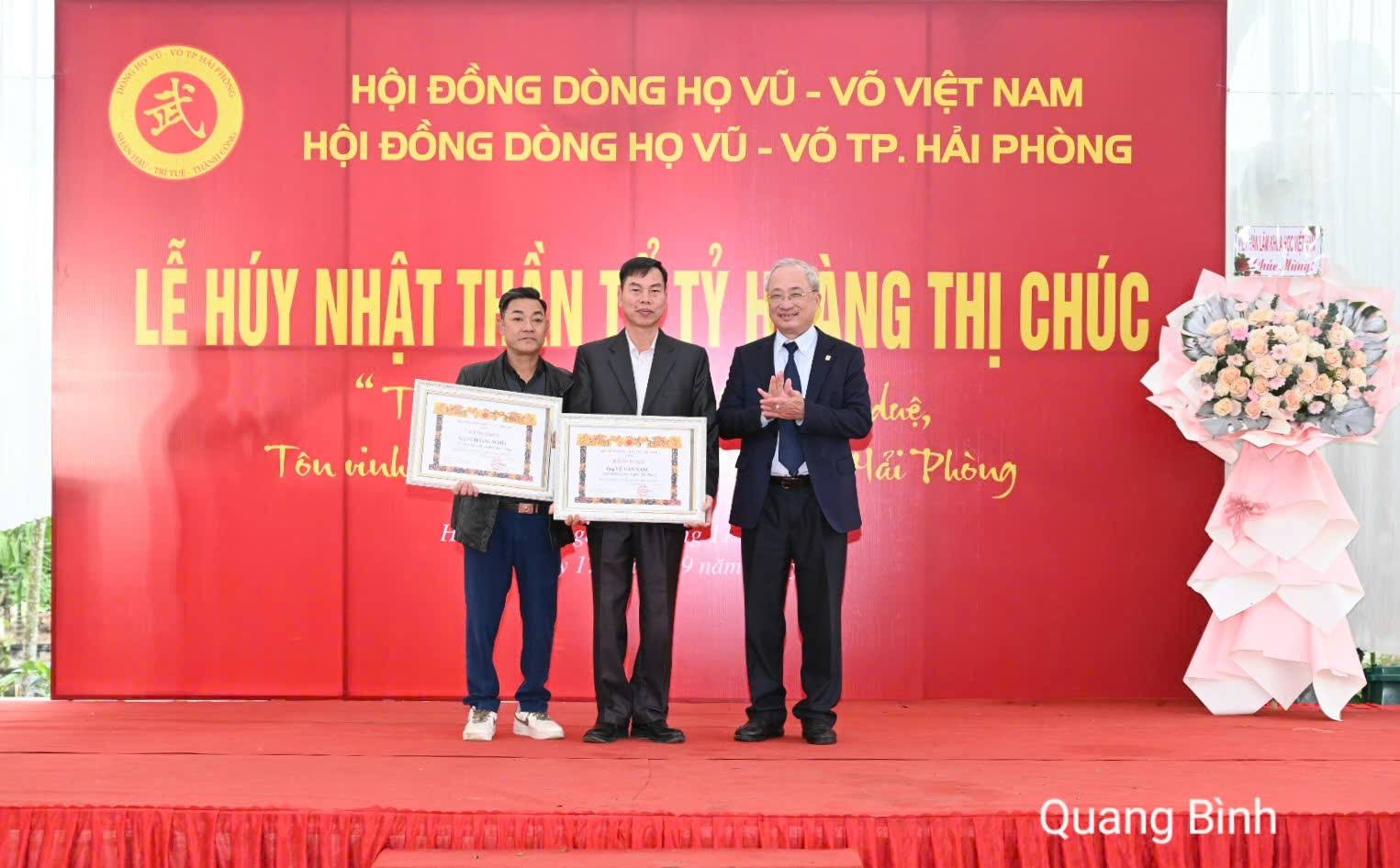 Tại buổi lễ, Lãnh đạo Hội đồng Dòng họ Vũ - Võ Việt Nam đã trao Bằng Vũ Tộc Tinh Hoa, Bằng Đại thọ và Bằng khen cho các tập thể, cá nhân thuộc Hội đồng Dòng họ Vũ - Võ TP. Hải Phòng.