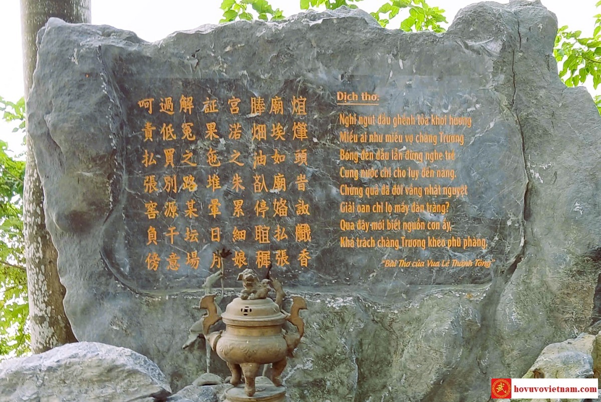 Bài thơ của Vua Lê Thánh Tông treo tại khu di tích.