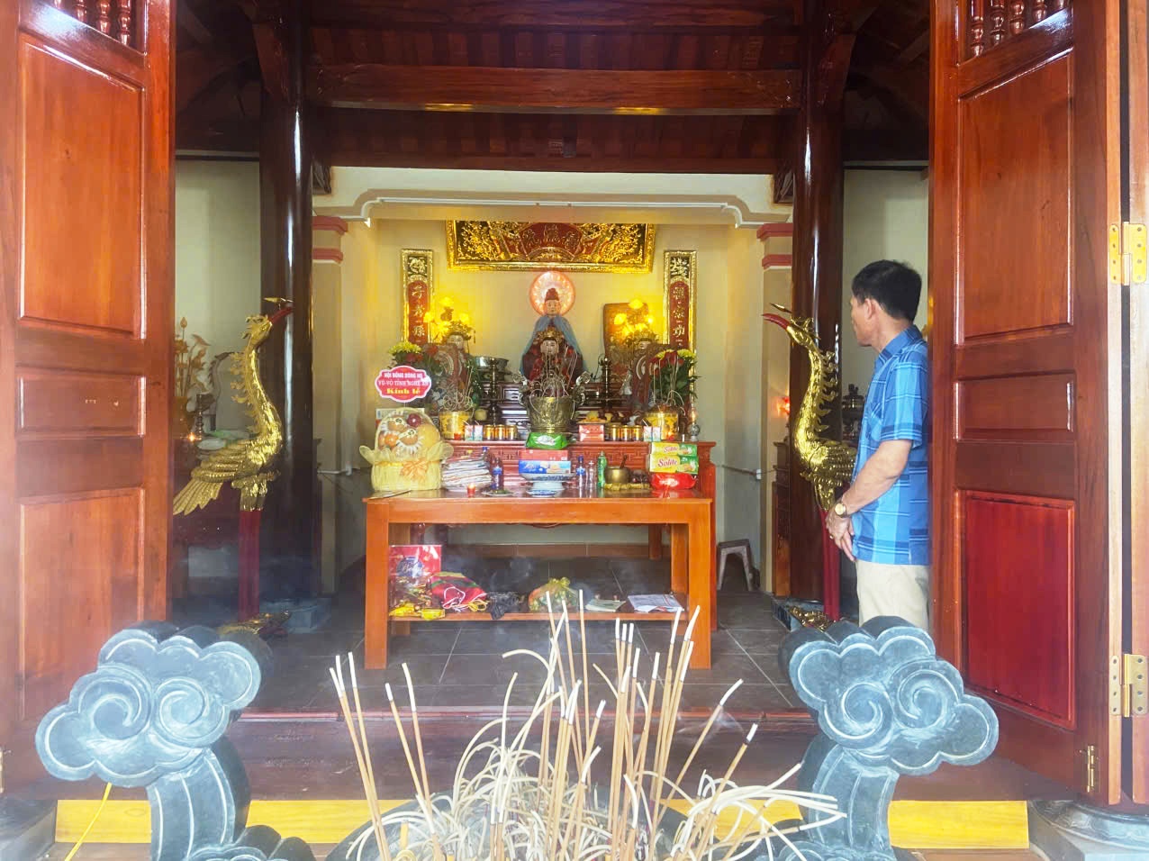 Thế là đầu năm 2025, vợ chồng doanh nhân đã về quê, trao đổi thống nhất với họ tộc, xây dựng lại Đền thờ Núi Nghè đàng hoàng, to đẹp hơn. Bà con họ Vũ Võ và cả những họ khác đã hăng hái công đức tiền của, công sức thi công. Mỗi hộ gia đình đã tự nguyện đóng góp 4 triệu đồng. Có cháu công đức 50 triệu đồng. Riêng gia đình ông Võ Văn Giáp chịu trách nhiệm toàn bộ phần gỗ (đắt đỏ nhất) và 50 triệu đồng tiền mặt, chiếm trên nửa kinh phí công trình, được hạch toán trên 700 triệu đồng.