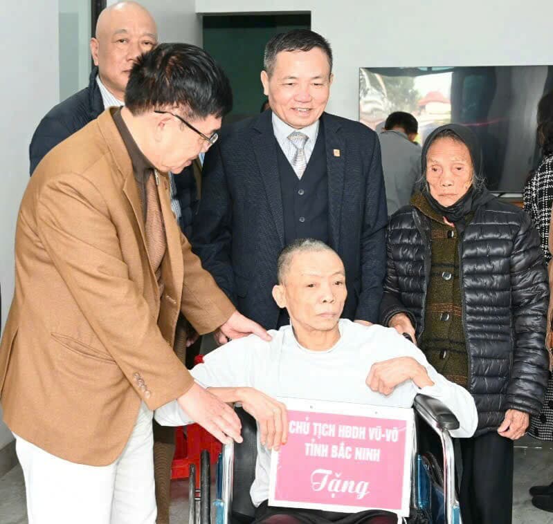 Tại Tổ dân phố Trung Phường Việt Yên, cá nhân ông Vũ Hồng Dương, Chủ tịch HĐDH Vũ - Võ tỉnh Bắc Ninh đã tặng một chiếc xe lăn cho ông Vũ Văn Đức 60 tuổi bị đột quỵ, liệt nửa người, không có khả năng đi lại, gia đình có hoàn cảnh đăc biệt khó khăn.