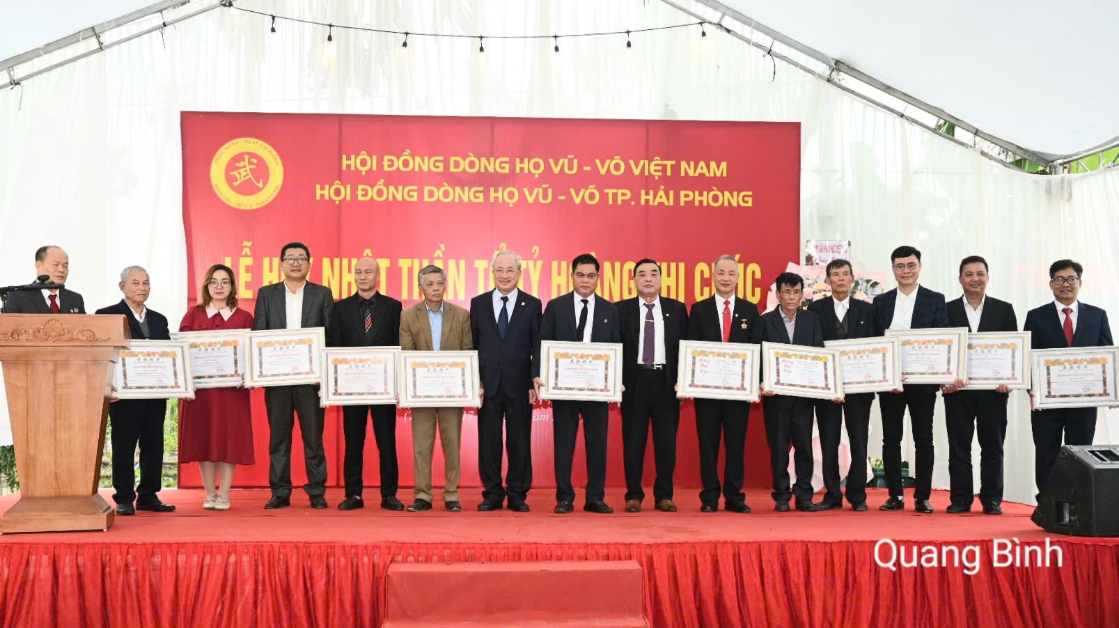 Tại buổi lễ, Lãnh đạo Hội đồng Dòng họ Vũ - Võ Việt Nam đã trao Bằng Vũ Tộc Tinh Hoa, Bằng Đại thọ và Bằng khen cho các tập thể, cá nhân thuộc Hội đồng Dòng họ Vũ - Võ TP. Hải Phòng.