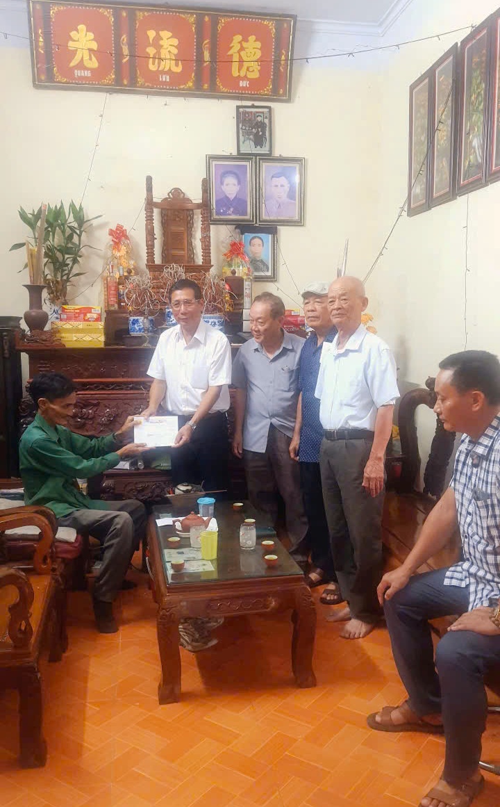 Lãnh đạo Hội đồng Dòng họ Nam Sách và Hội Nhà giáo Vũ - Võ Nam Sách trao quà hỗ trợ cho gia đình cháu Vũ Huy Hoàng.