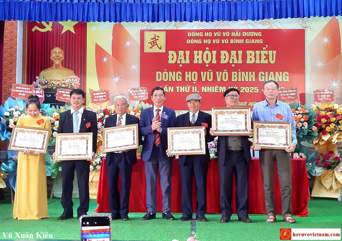 Đại hội đã trao tặng Bằng "Vũ Tộc Tinh Hoa" và Bằng khen cho các tập thể và cá nhân đã có thành tích hoàn thành xuất sắc nhiệm vụ và có nhiều đóng góp cho các hoạt động của Hội đồng Dòng họ Vũ - Võ Bình Giang nhiệm kỳ I.