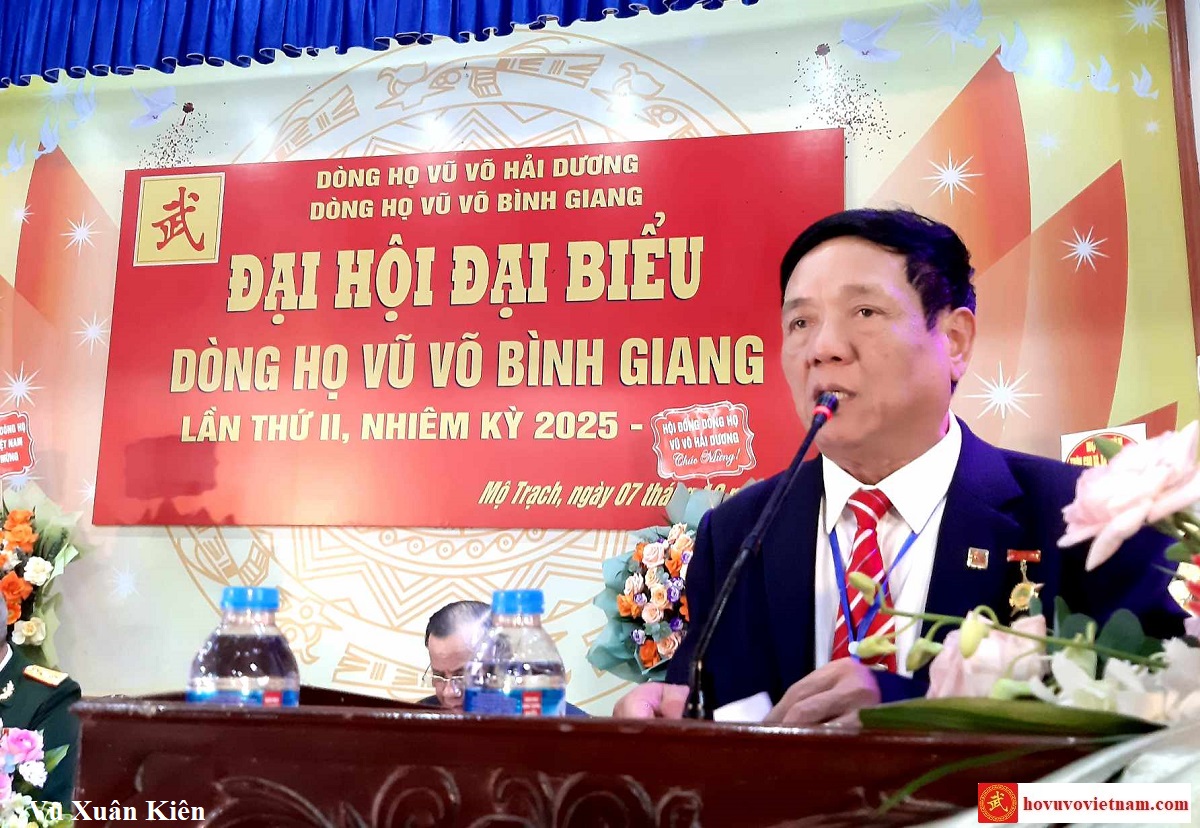 Phát biểu khai mạc Đại hội, ông Vũ Đình Quang, Chủ tịch Hội đồng Dòng họ Vũ - Võ Bình Giang cho biết: Đại hội có ý nghĩa rất quan trọng trong việc tiếp tục gắn kết các chi họ Vũ trên địa bàn huyện Bình Giang (cũ) với tâm nguyện "Hướng về cội nguồn - Họ Vũ kết nối chung dòng"; Tiếp tục phát huy truyền thống đưa tầm vóc của Dòng họ Vũ - Võ lên tầm cao mới.