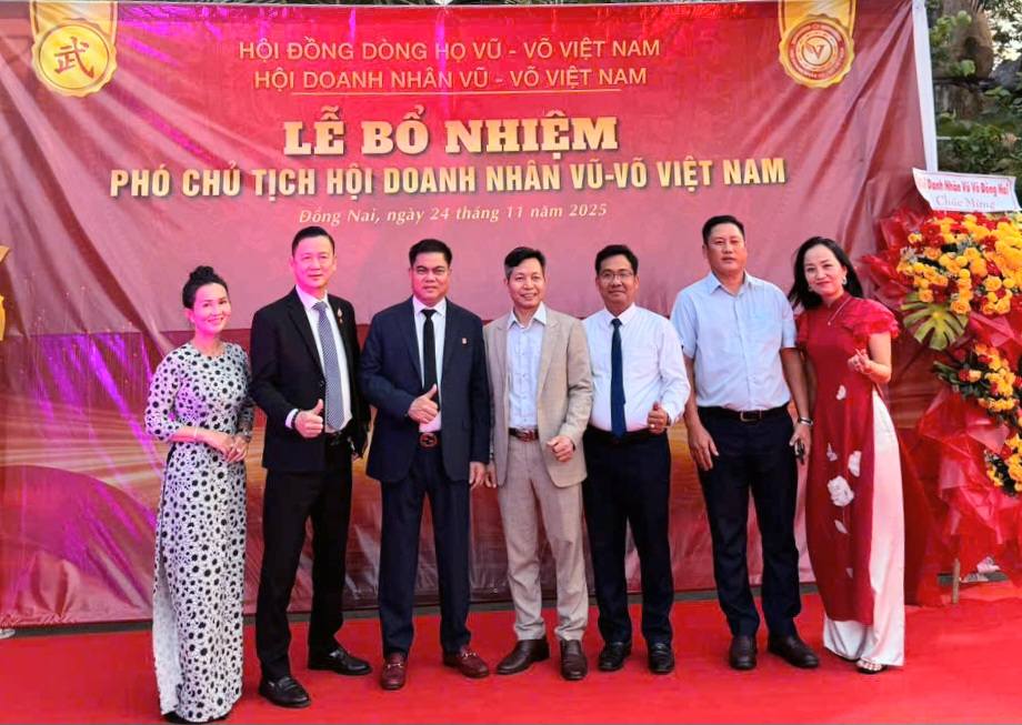 (hovuvovietnam.com) - Ngày 24/11/2025 tại tỉnh Bình Phước (cũ), nay là tỉnh Đồng Nai, Hội Doanh nhân Vũ - Võ Việt Nam đã tổ chức Lễ công bố quyết định bổ nhiệm Doanh nhân Võ Quang Thuận, Chủ tịch Hội đồng Quản trị Công ty TNHH Cao su Thuận Lợi giữ chức vụ Phó Chủ tịch Hội Doanh nhân Vũ - Võ Việt Nam.